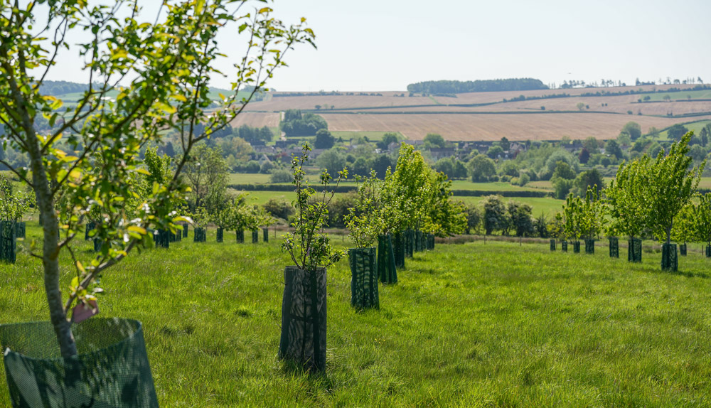 The woodland shelterbelt to the north of the farm was established in 2014. It helps protect against prevailing winds, provides a habitat for wildlife and is also a great sequester of carbon. Supported by The Woodland Trust, the shelter belt comprises a mix of native shrubs and trees including field maple, lime, hazel, blackthorn, hawthorn, beech and many other species.